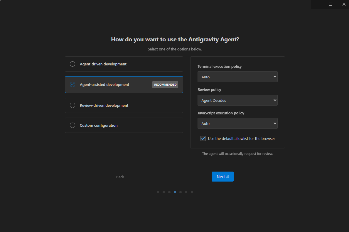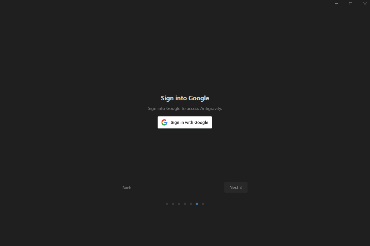 Antigravityを初めて起動すると、セットアップウィザードが表示されます。