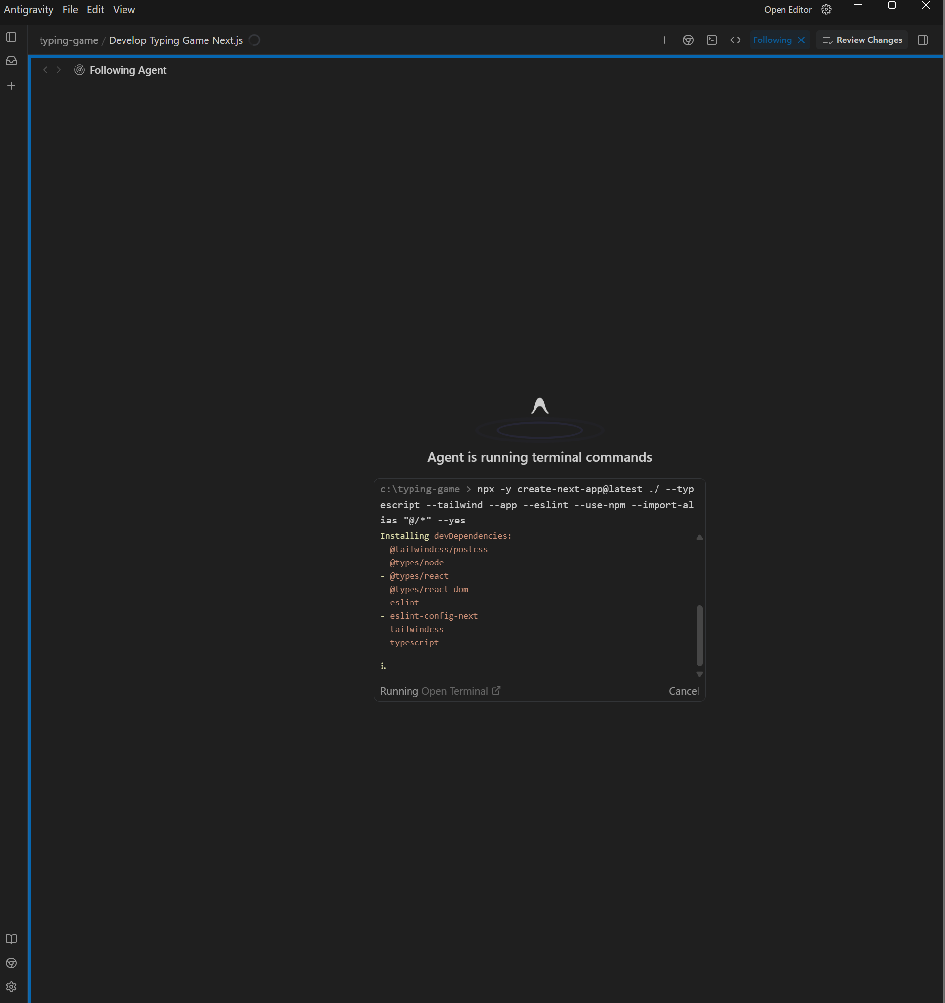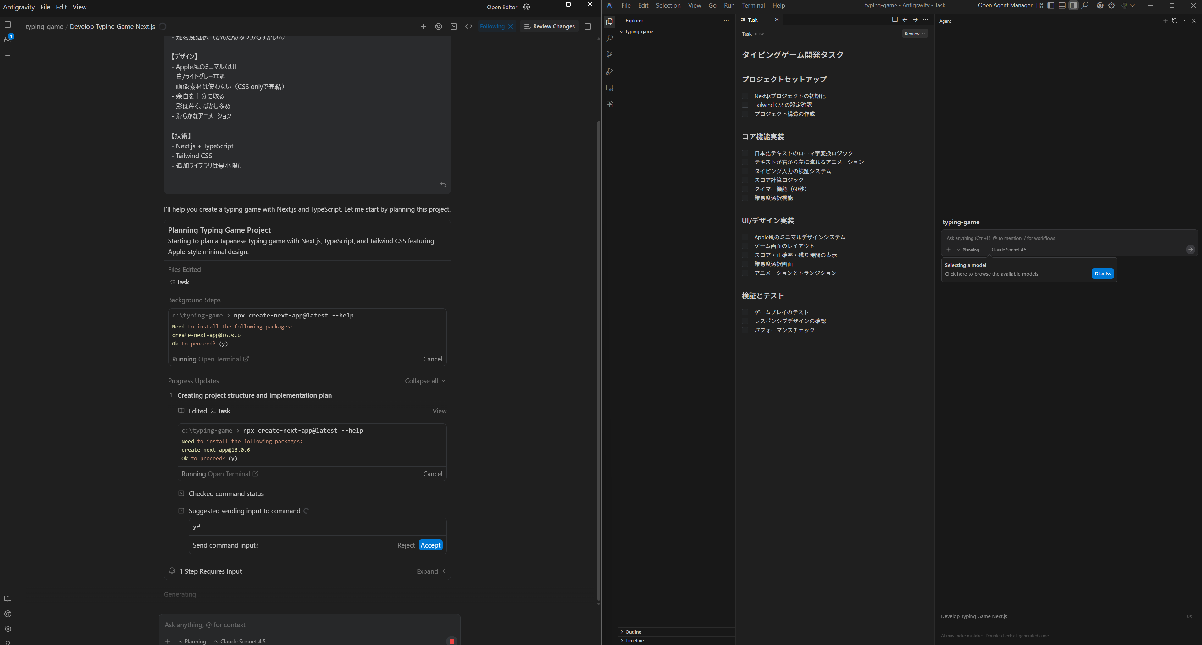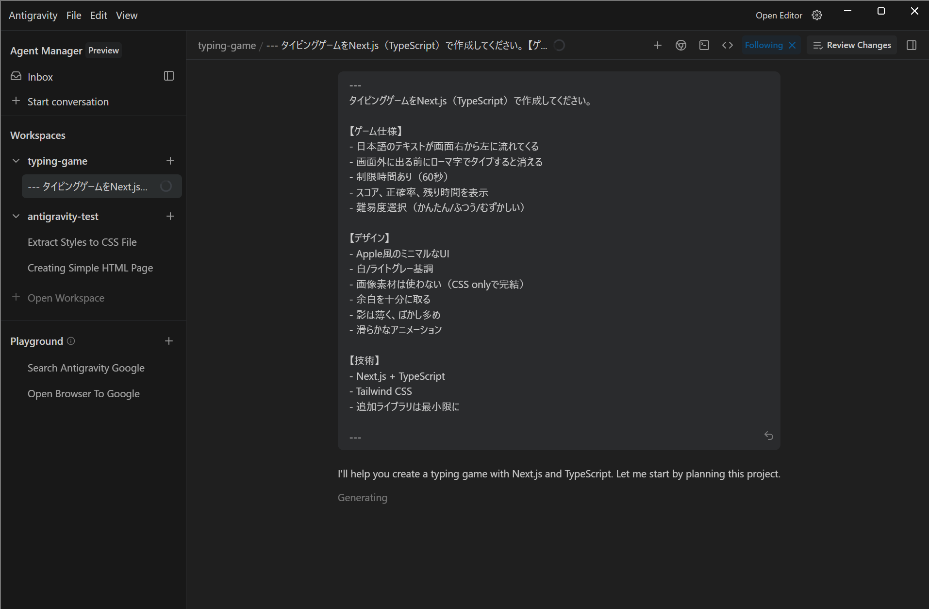 エージェントが「Let me start by planning this project.」と応答し、計画フェーズに入ります。