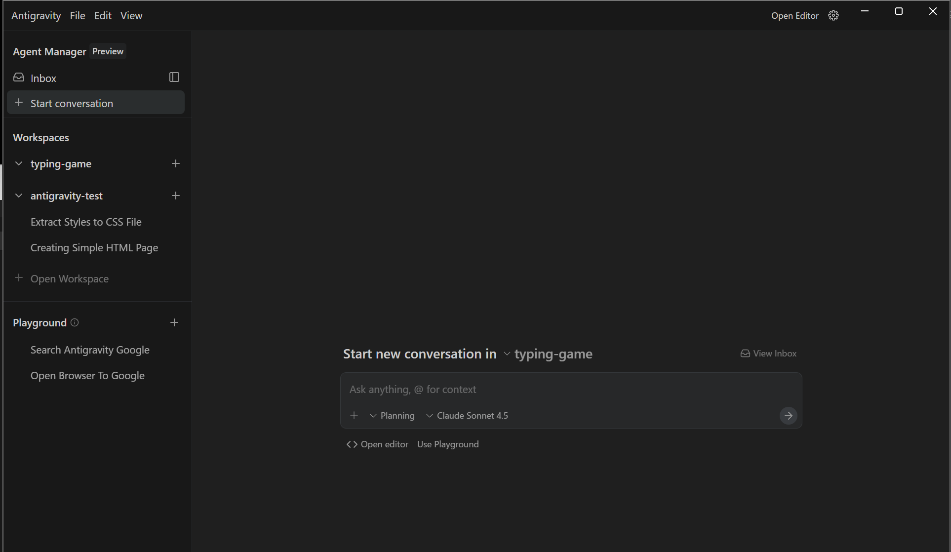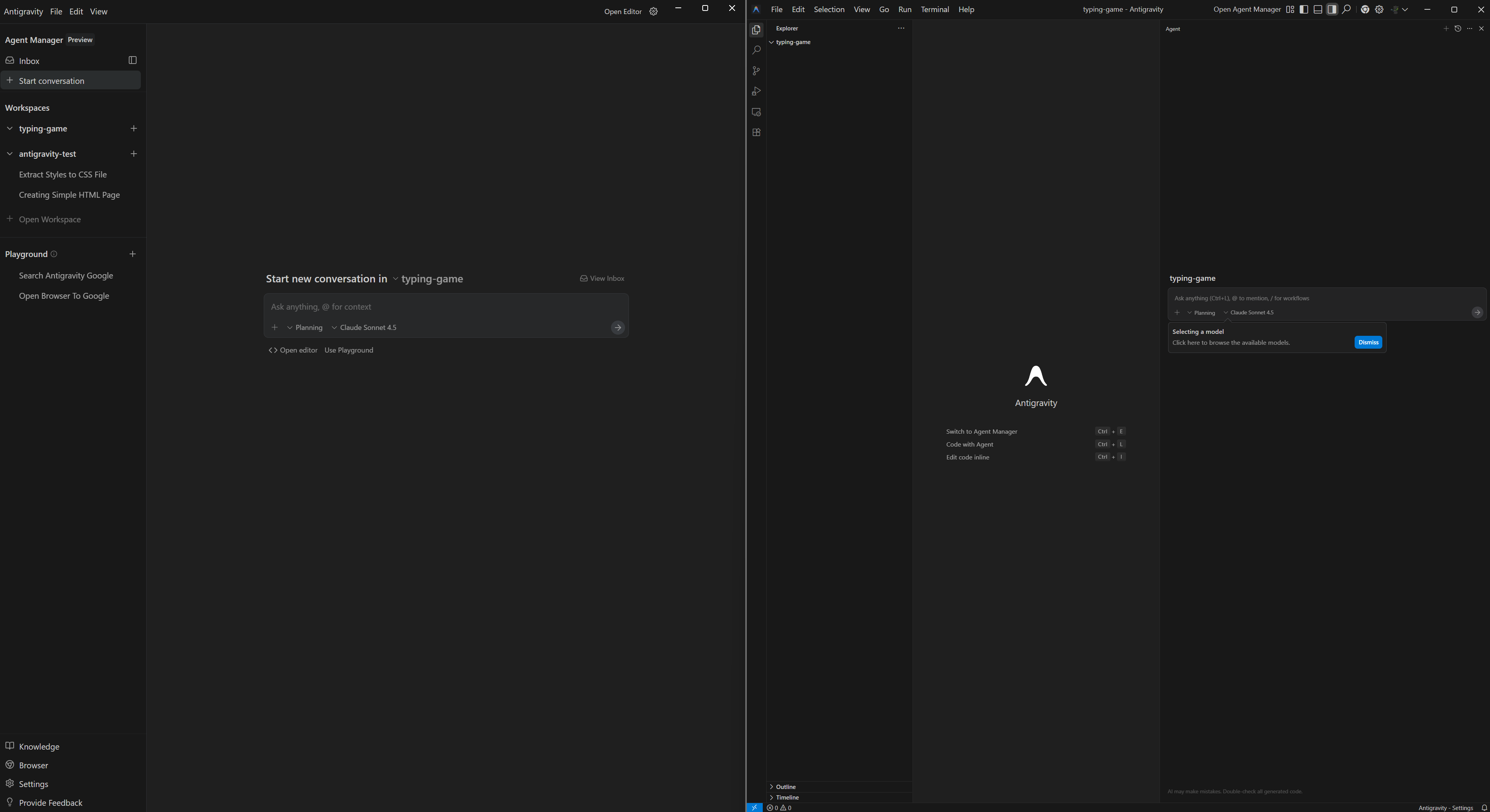 効率的な作業のため、Agent ManagerとEditorを並べて表示することを推奨します。