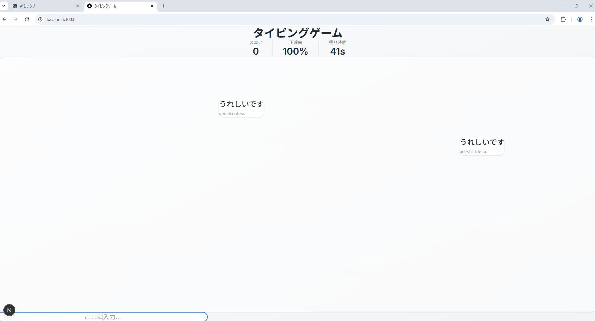 完成したタイピングゲーム: https://typing-game-one-taupe.vercel.app/