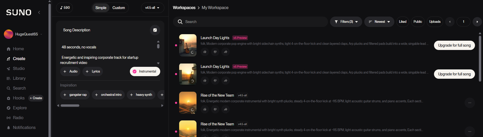 Q: Sunoの無料枠で足りますか? A: 無料枠でも1日に数曲生成できます。企業PV 1本分のBGMなら十分です。