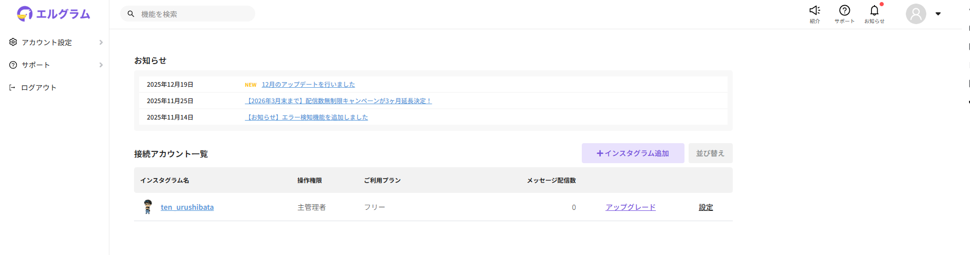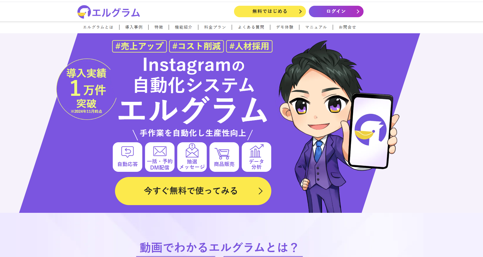 Q: エルグラムは本当に無料ですか? A: はい。さらに2026年3月末までに登録したアカウントは、月間のDM/コメント自動返信通数が無制限になるキャンペーン中です。通常は月間1,000通までが無料プランの制限ですが、キャンペーン期間中は無制限で利用できます。