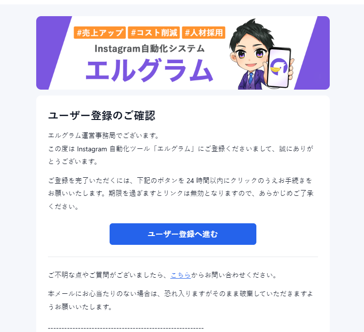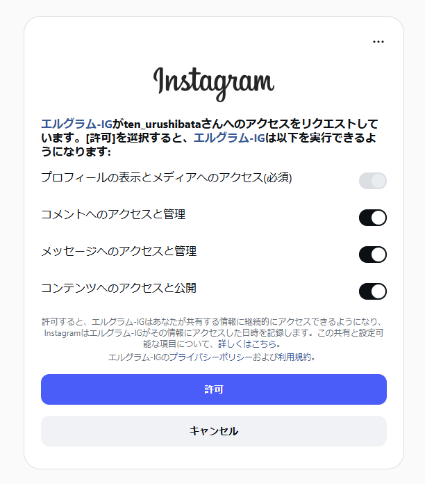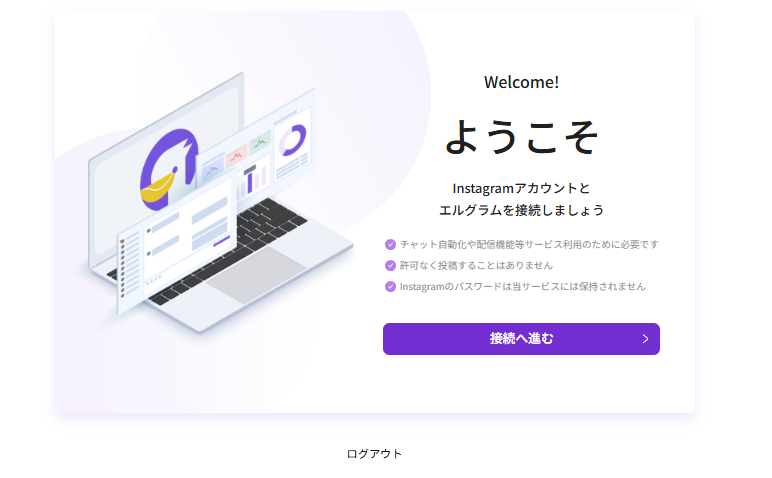 - エルグラムにアカウント登録し、Instagramと連携できる