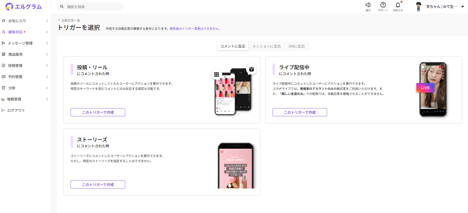 - 投稿へのコメントをトリガーにDMを自動送信できる