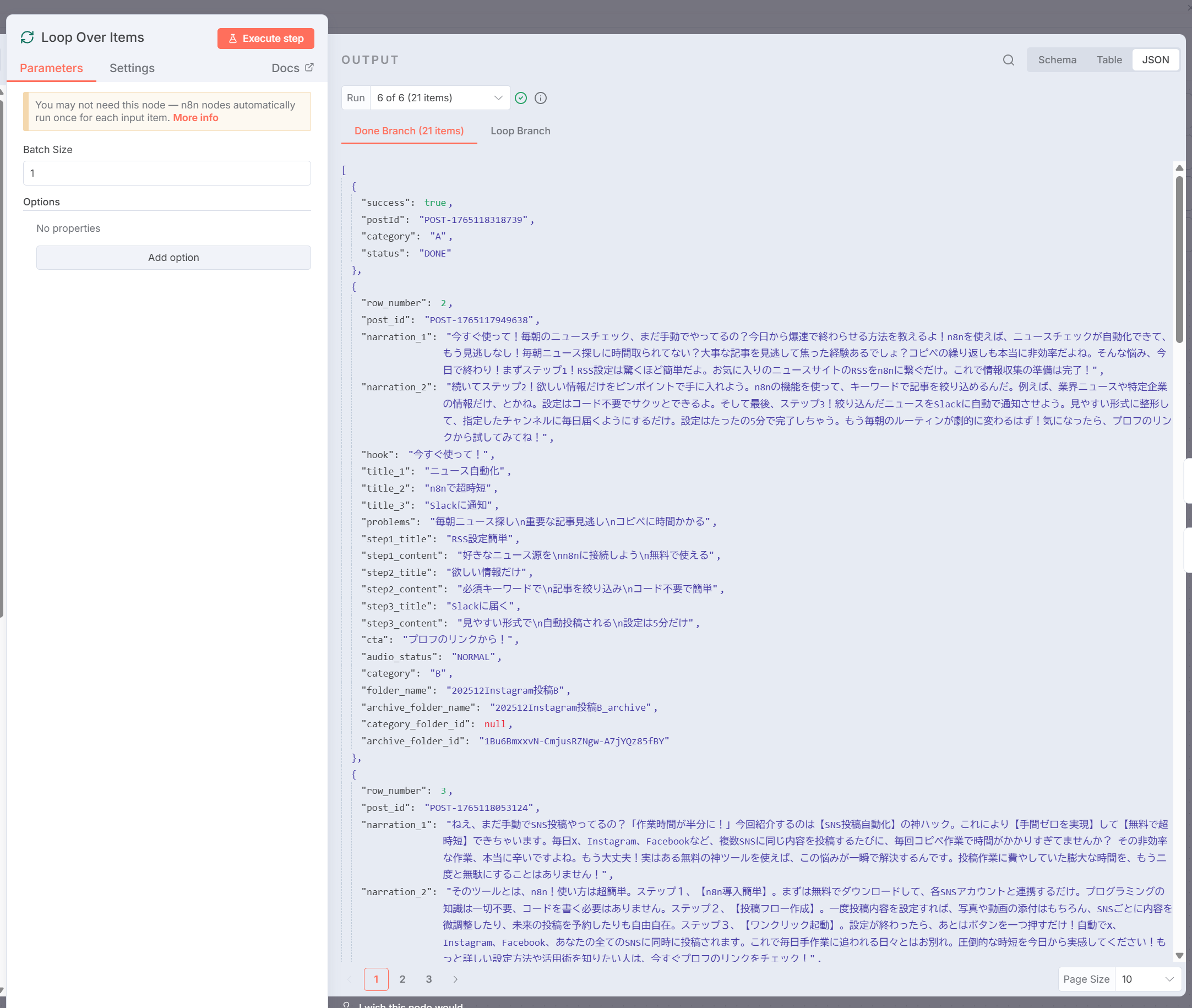 - Instagram投稿ワークフローでaudio_status=DONEの動画のみを対象にする