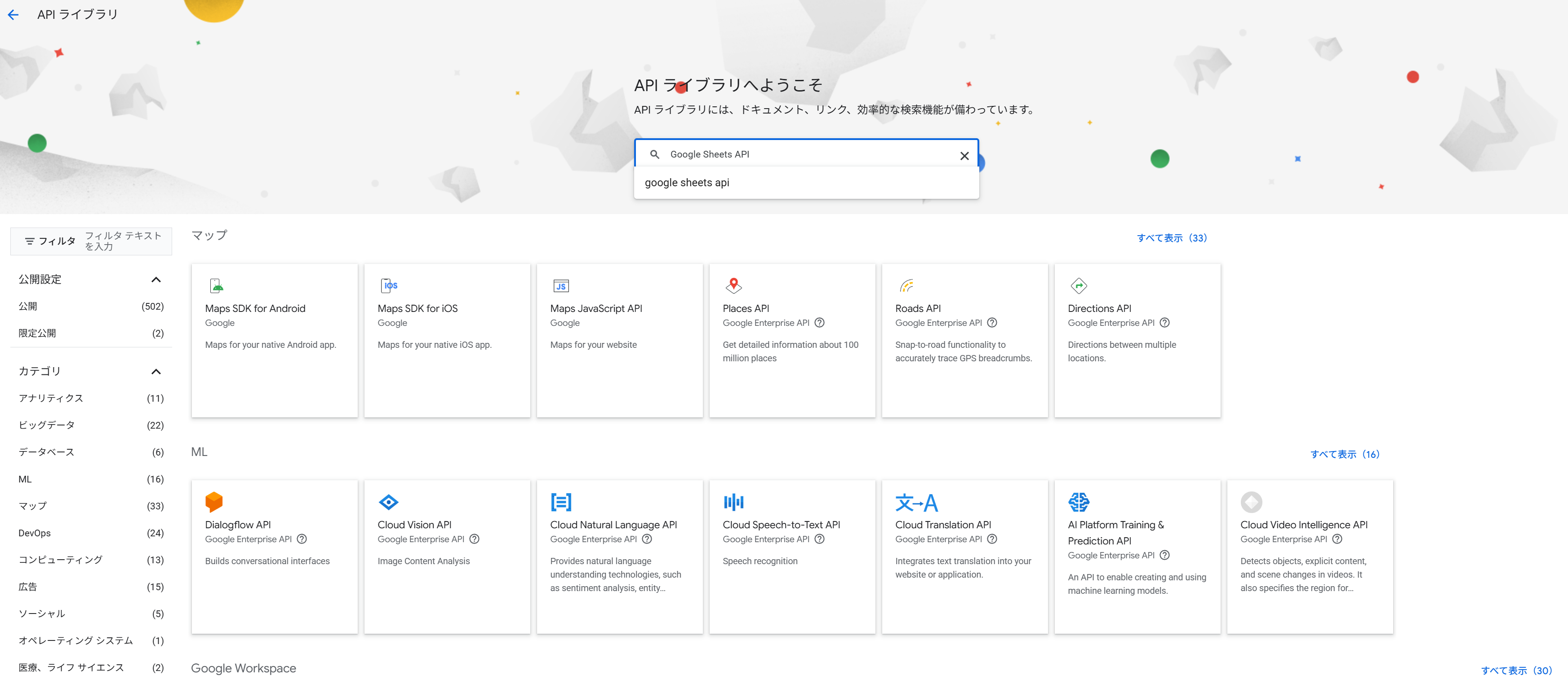 - 「APIとサービス」 → 「ライブラリ」 を選択