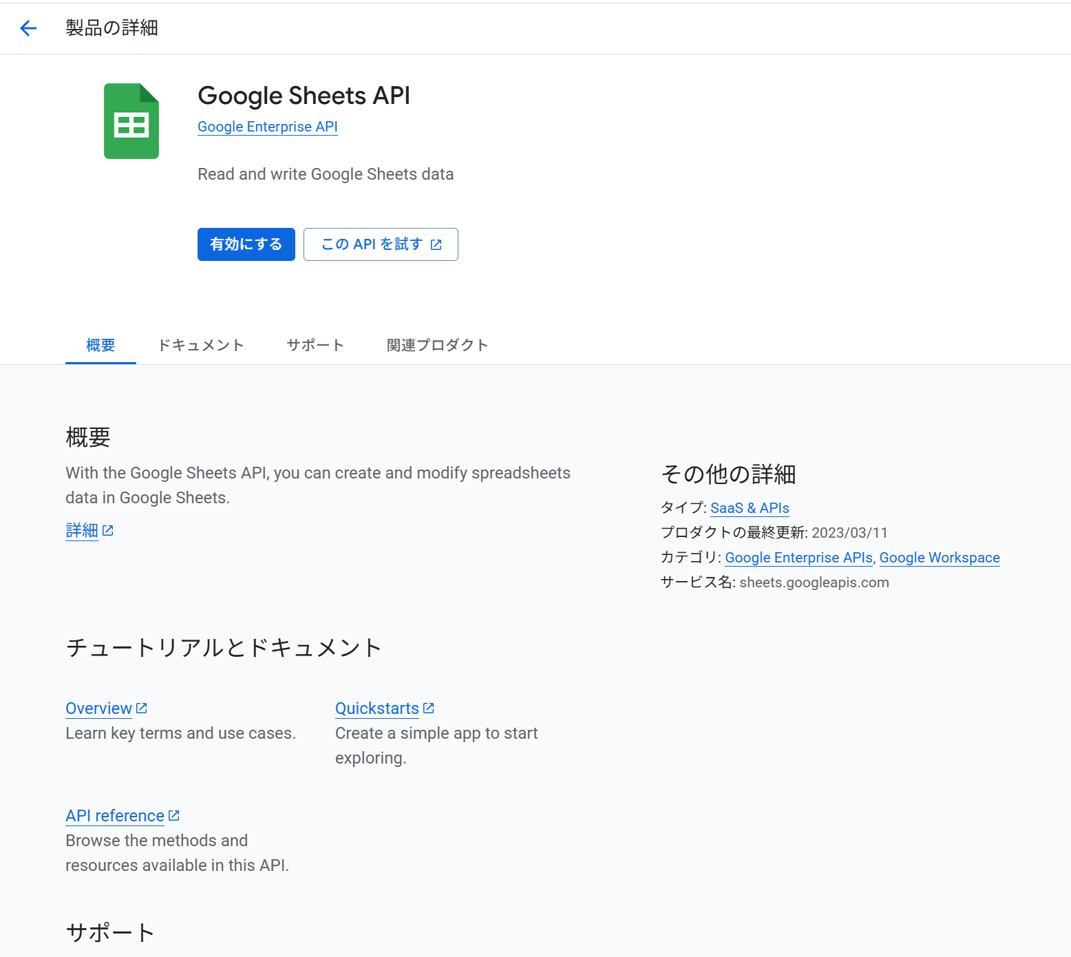 - スプレッドシートの作成、データ追加、読み込み、更新ができる