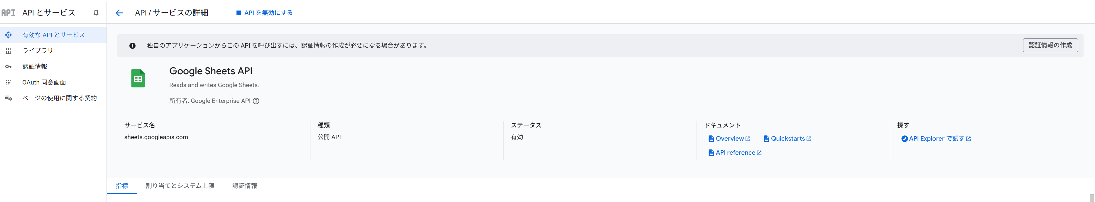 n8nからGoogle Sheetsにアクセスするには、Google Cloud ConsoleでAPIを有効化する必要があります。