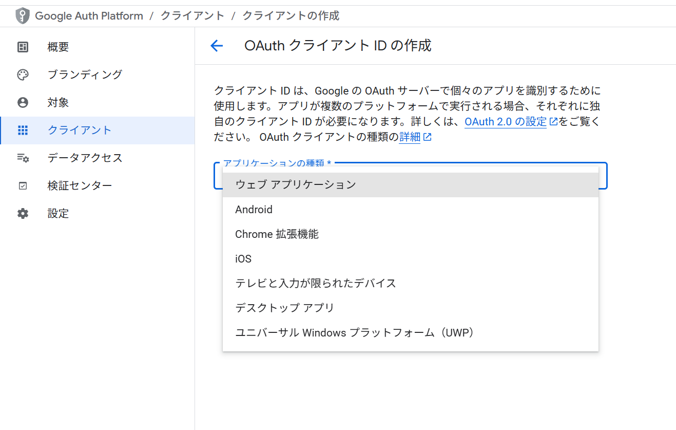 - Google Cloud ConsoleでOAuth 2.0クライアントを作成できる