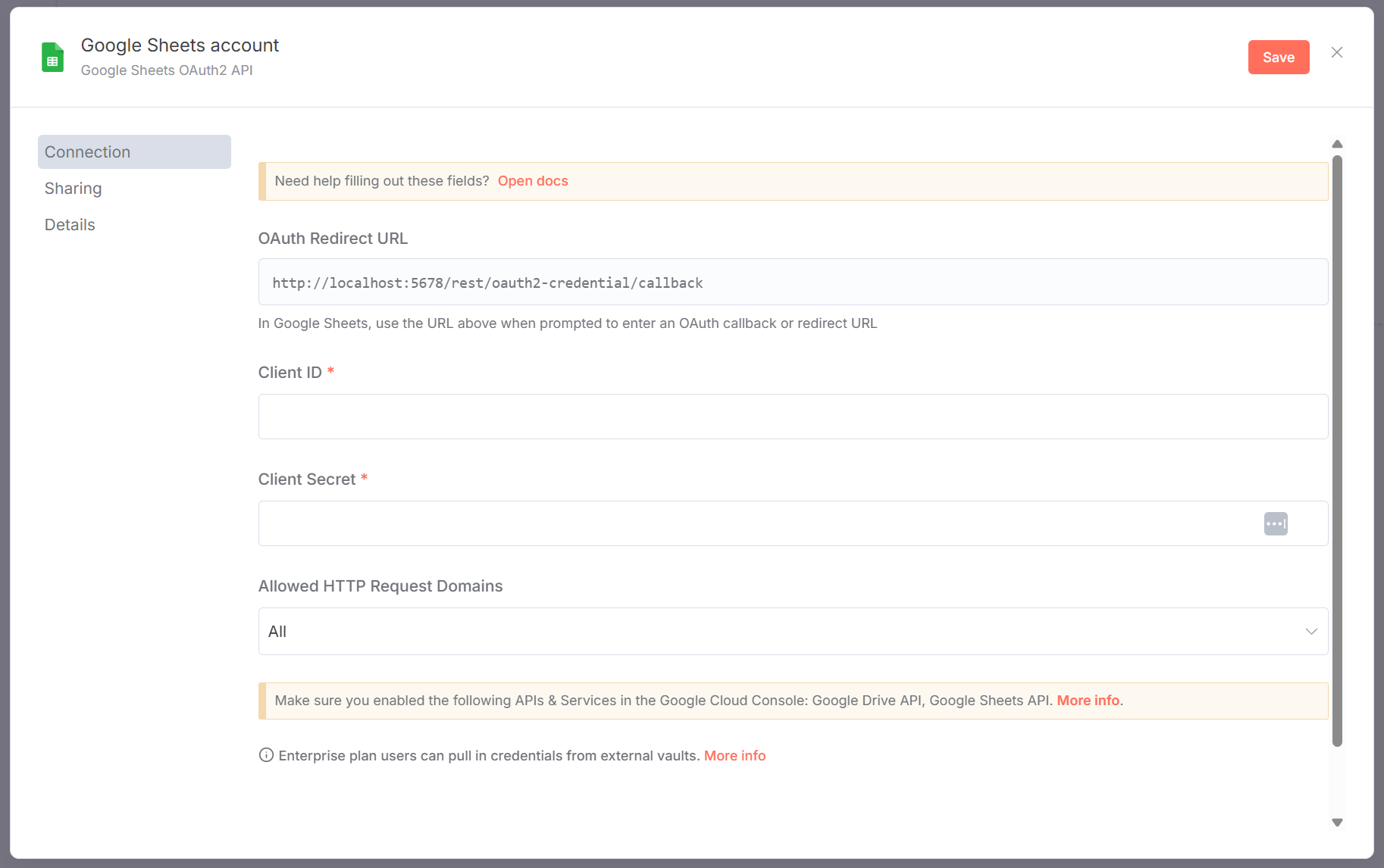 | 承認済みのリダイレクトURI | http://localhost:5678/rest/oauth2-credential/callback |