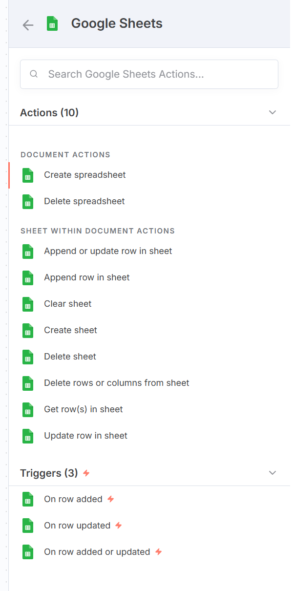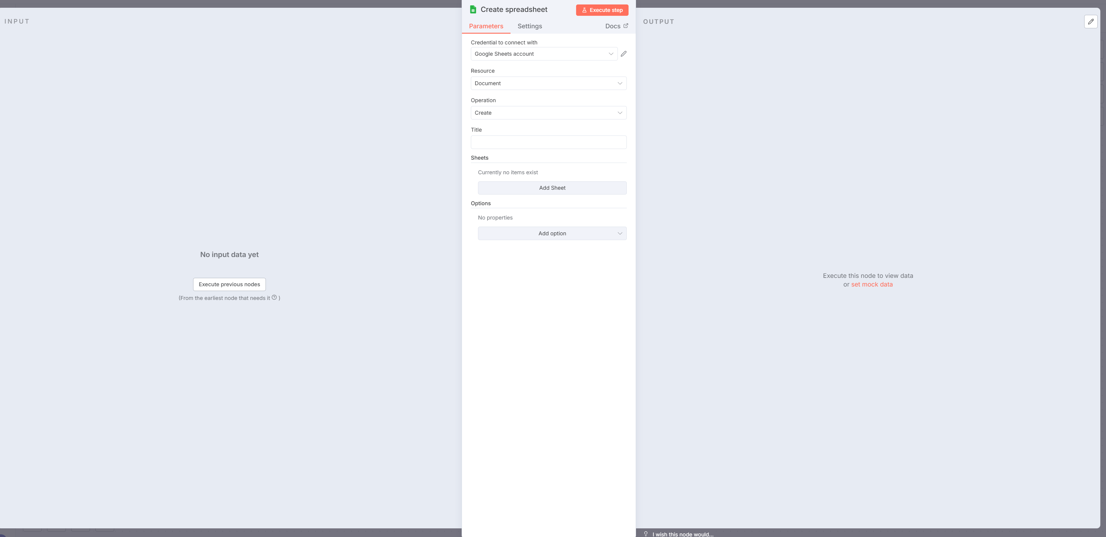 Q: 既存のスプレッドシートを使用できますか? A: はい。ノード設定で「Document」を「By URL」または「From list」に変更し、既存のスプレッドシートを指定できます。