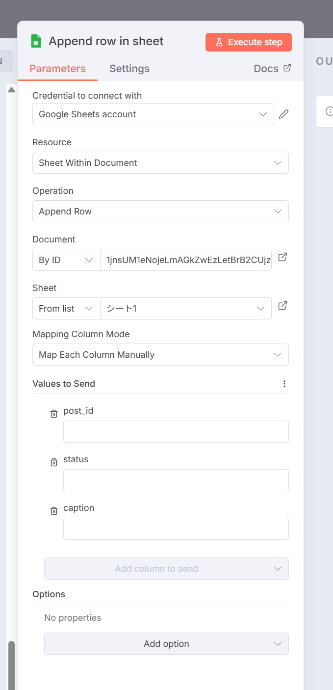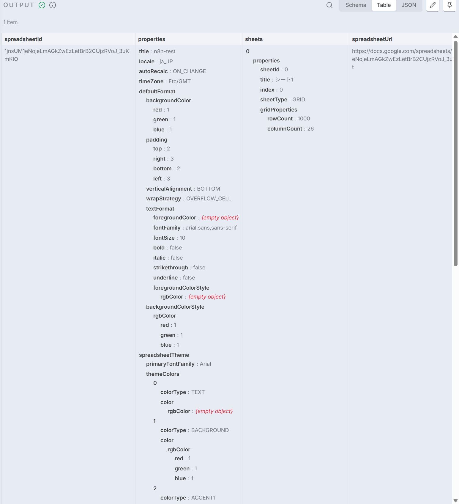 - Google Sheetsノードを使った基本操作(作成・読み込み・追加・更新)
