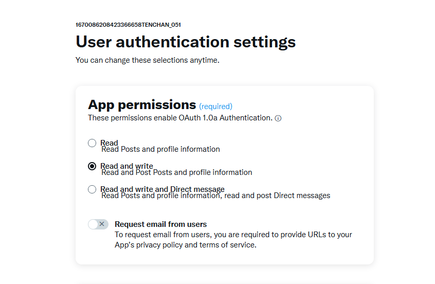 権限を変更した後は、Access TokenとAccess Token Secretを再生成する必要があります。