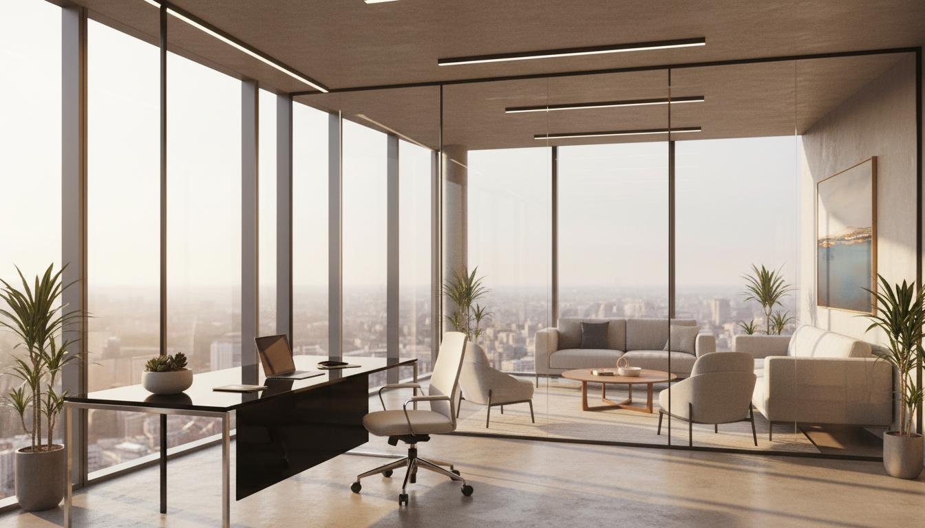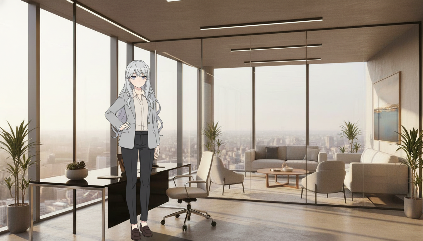 ビジネスシーン合成で使用するオフィス背景を生成します。