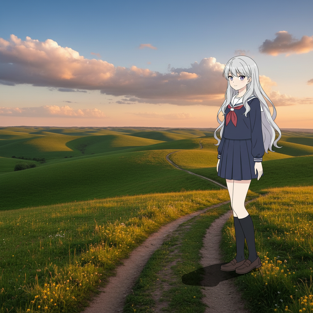 生成したキャラクターシート(kai_base.png)を参照画像として、様々な環境に配置します。