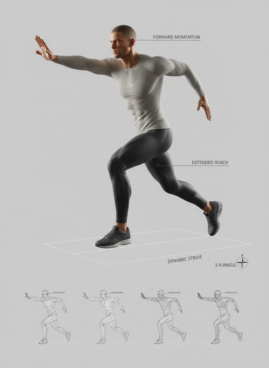 Dynamic pose appropriate for the setting.