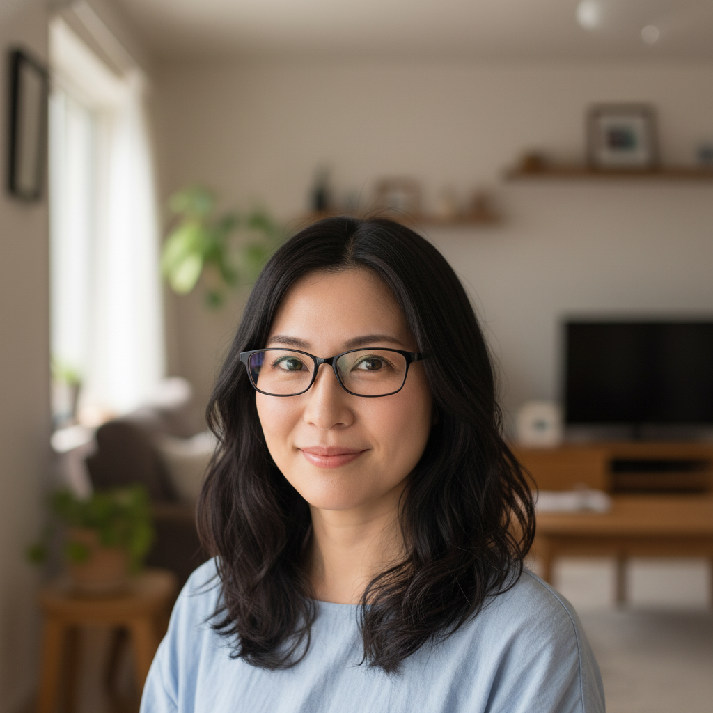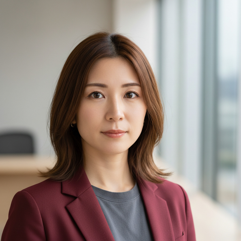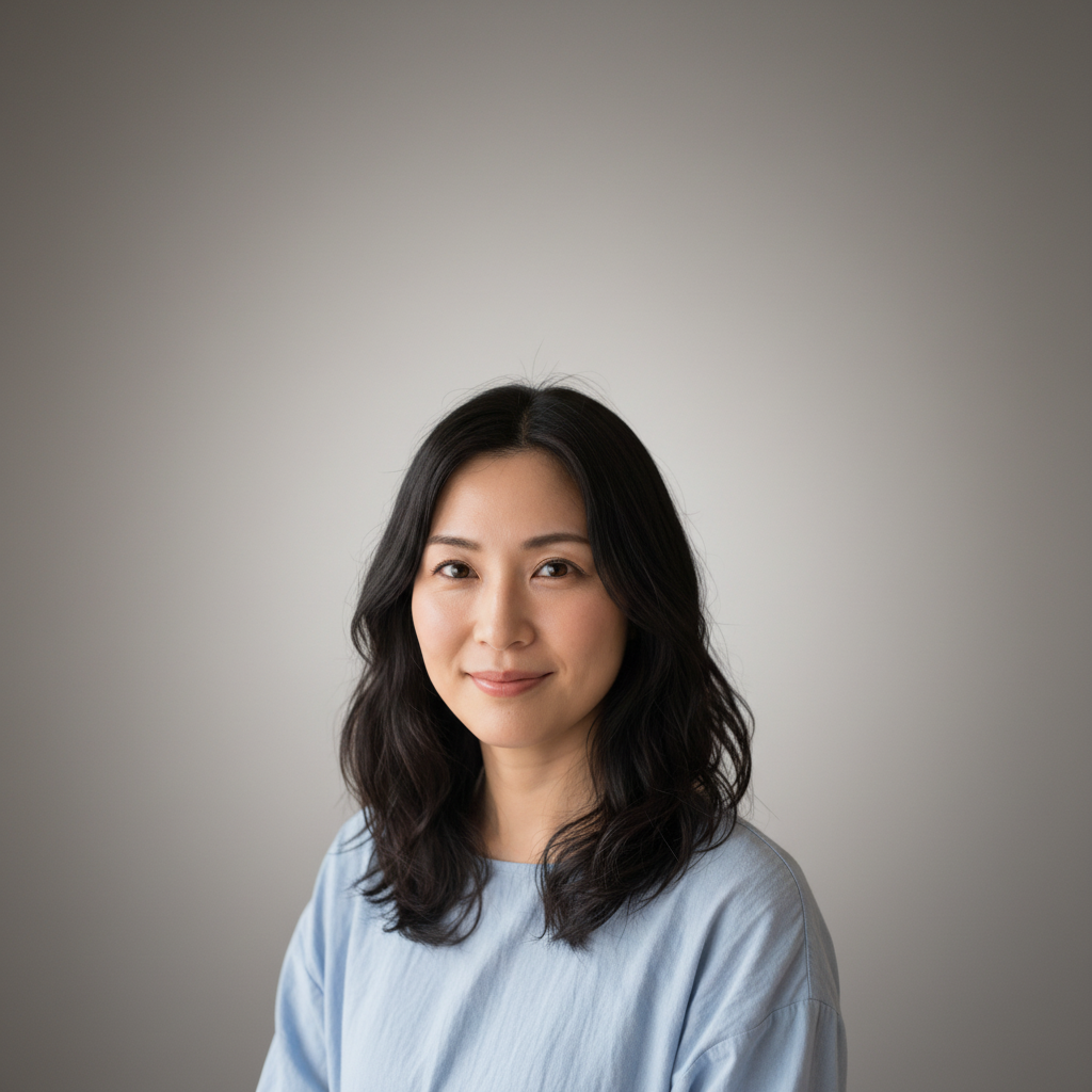 A photorealistic portrait of a 30-year-old Japanese woman.