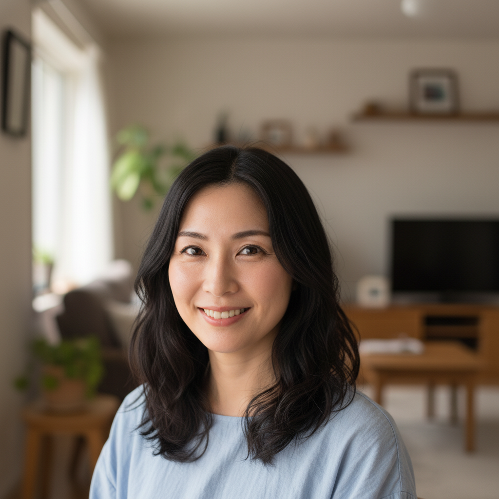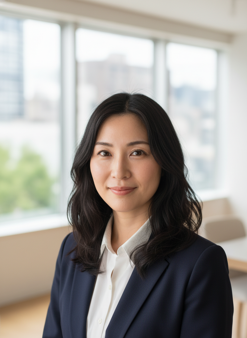 | 笑顔 | Natural, warm smile (not exaggerated) | 自然で暖かい(大げさでない)笑顔 |