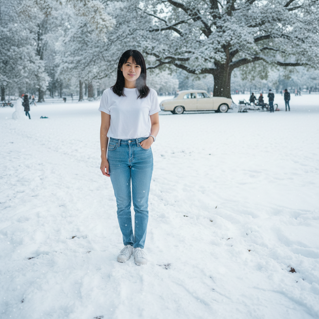 | 4-2 | summer_photo.jpg | 夏→冬に季節変更 | 屋外の写真 or Step 2で生成 |